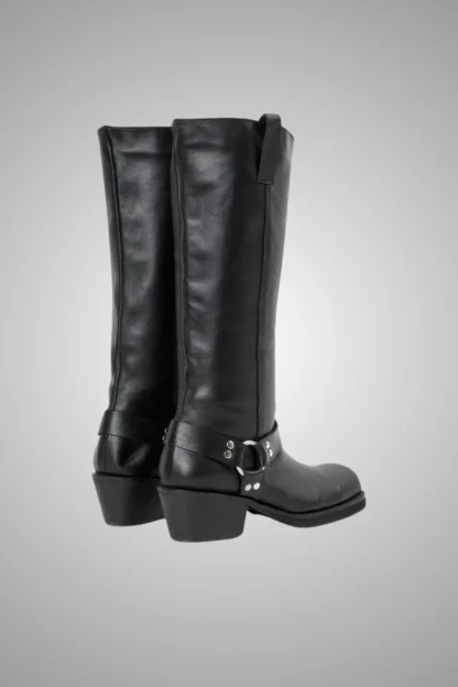 Botas altas con cinturón en el tobillo con anillo metálico color niquel y taco tejano.