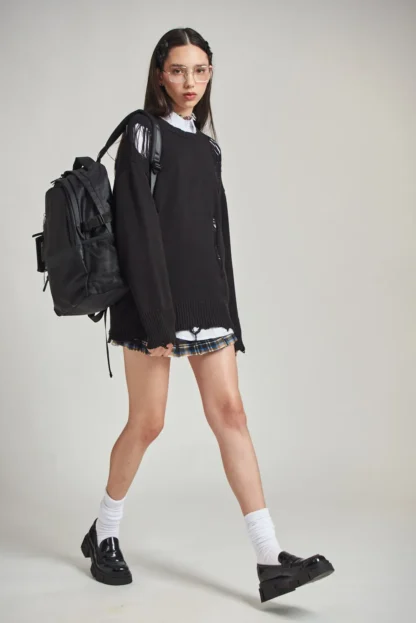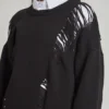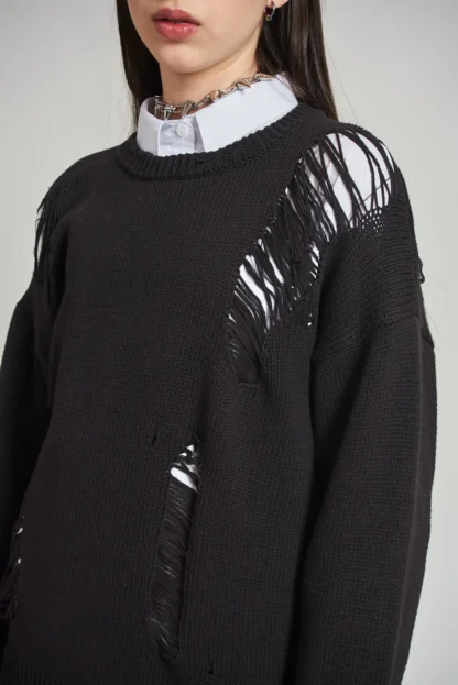 sweater mangas largas, 100% algodón, con multiroturas y desgarres.